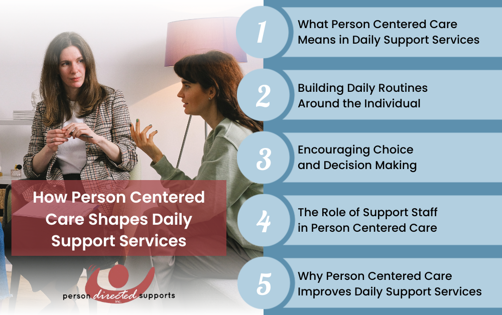 Person centered care shapes daily support services by keeping the individual at the heart of every interaction, routine, and decision. When support is guided by personal goals, preferences, and strengths, daily services feel more respectful, consistent, and meaningful.